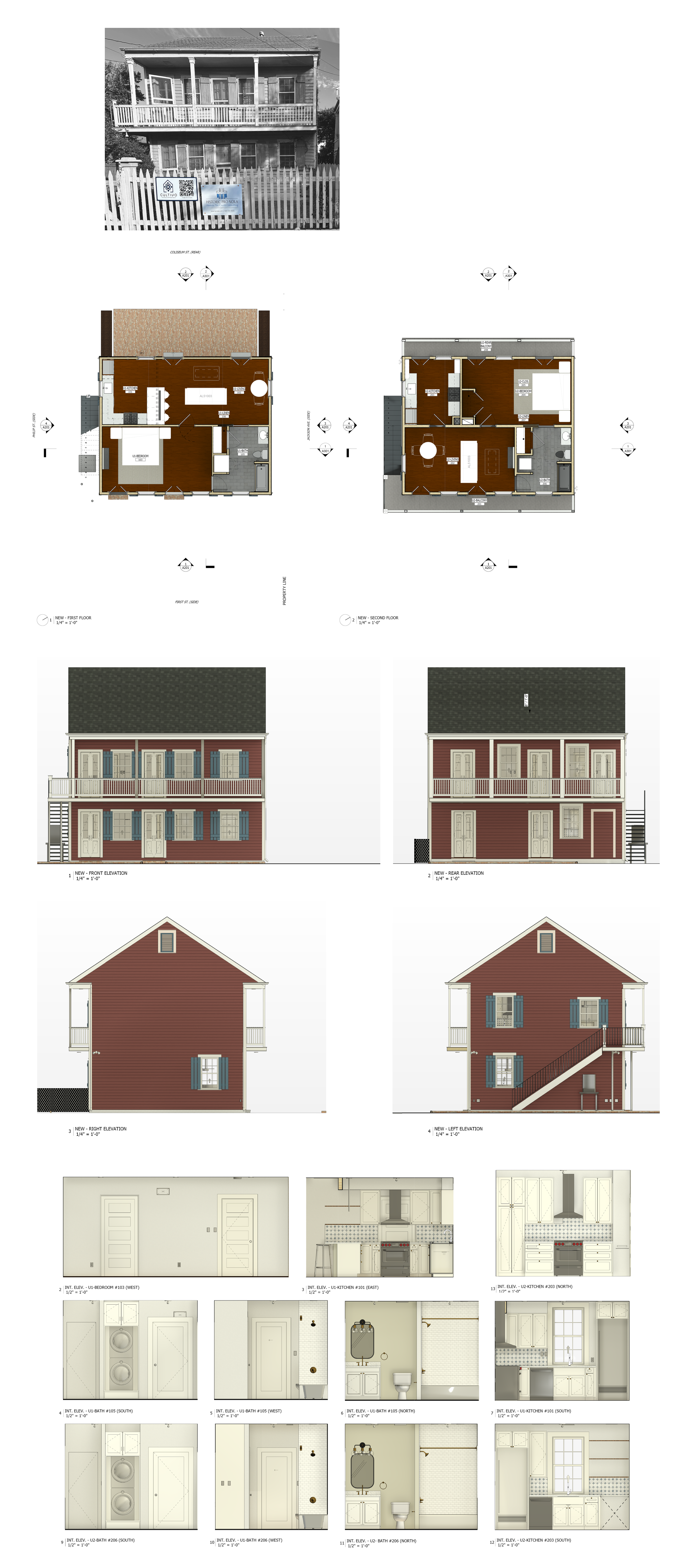 Renovation to an Existing Outbuilding in collaboration with Historic Pro NOLA Historic Tax Credit Consulting (HP NOLA). Cultivo and HP NOLA worked with the homeowners to put set forth a set of plans to fully restore this Garden District Outbuilding utilizing State and Federal Historic Tax Credits that modernizes the layout with new fixtures, finishes, and cabinetry.
